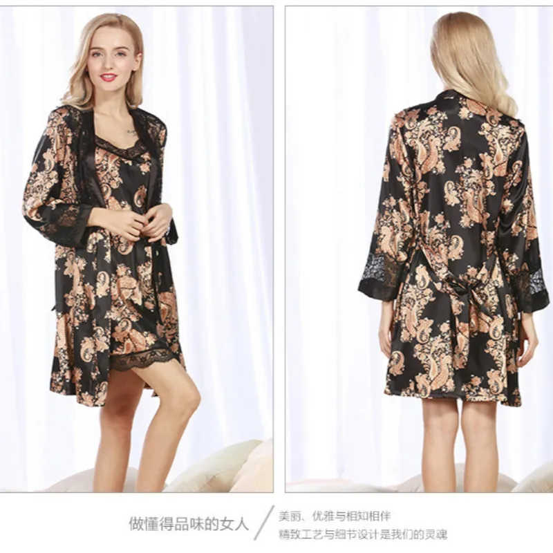 Lisacmvpnel/комплект из 3 предметов с принтом женский халат комплект на бретельках +