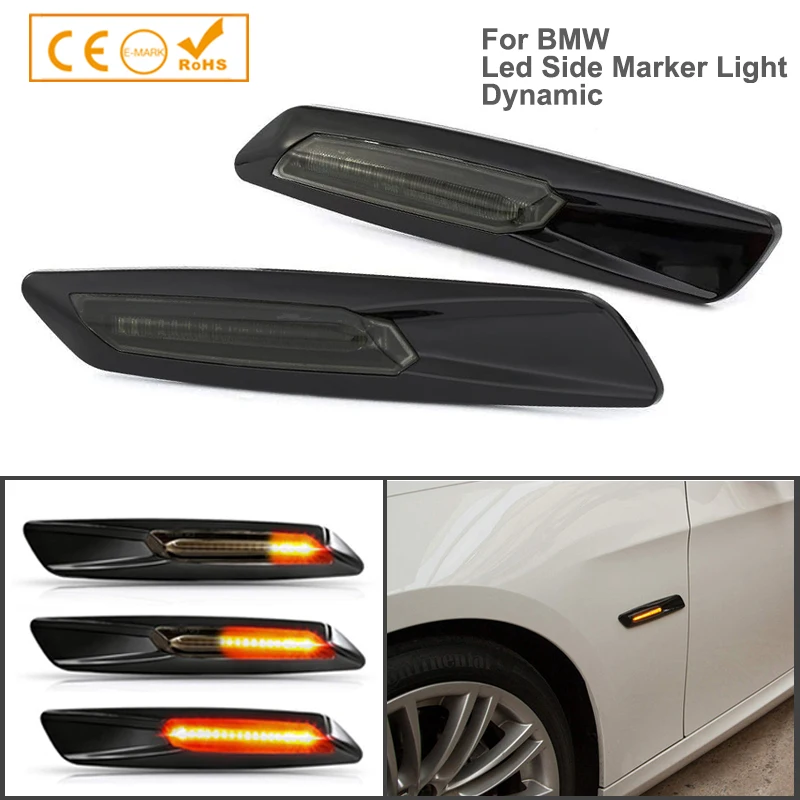 2x черный глянец Тип и дымчатые линзы E60 E61 светодиодный Fender Боковой габаритный фонарь поворота светильник для BMW 3 серии E90 E91 E92 E93