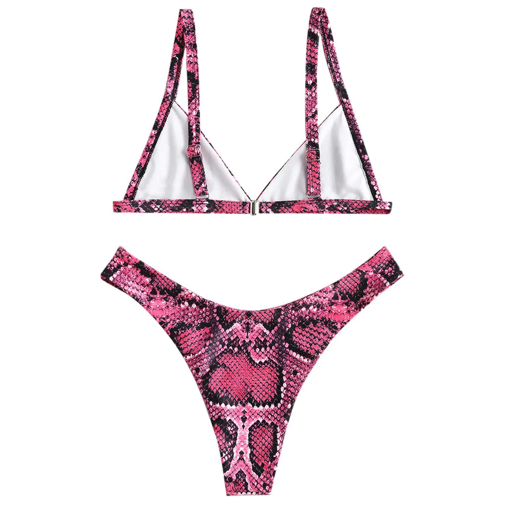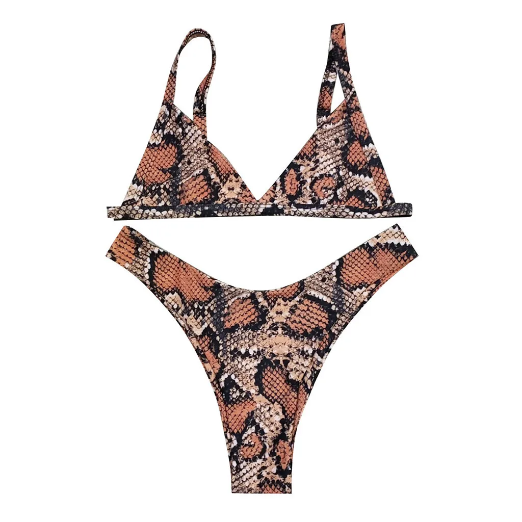 Купальник-бикини из змеиной кожи с v-образным вырезом и высоким вырезом, купальный костюм, пляжная одежда