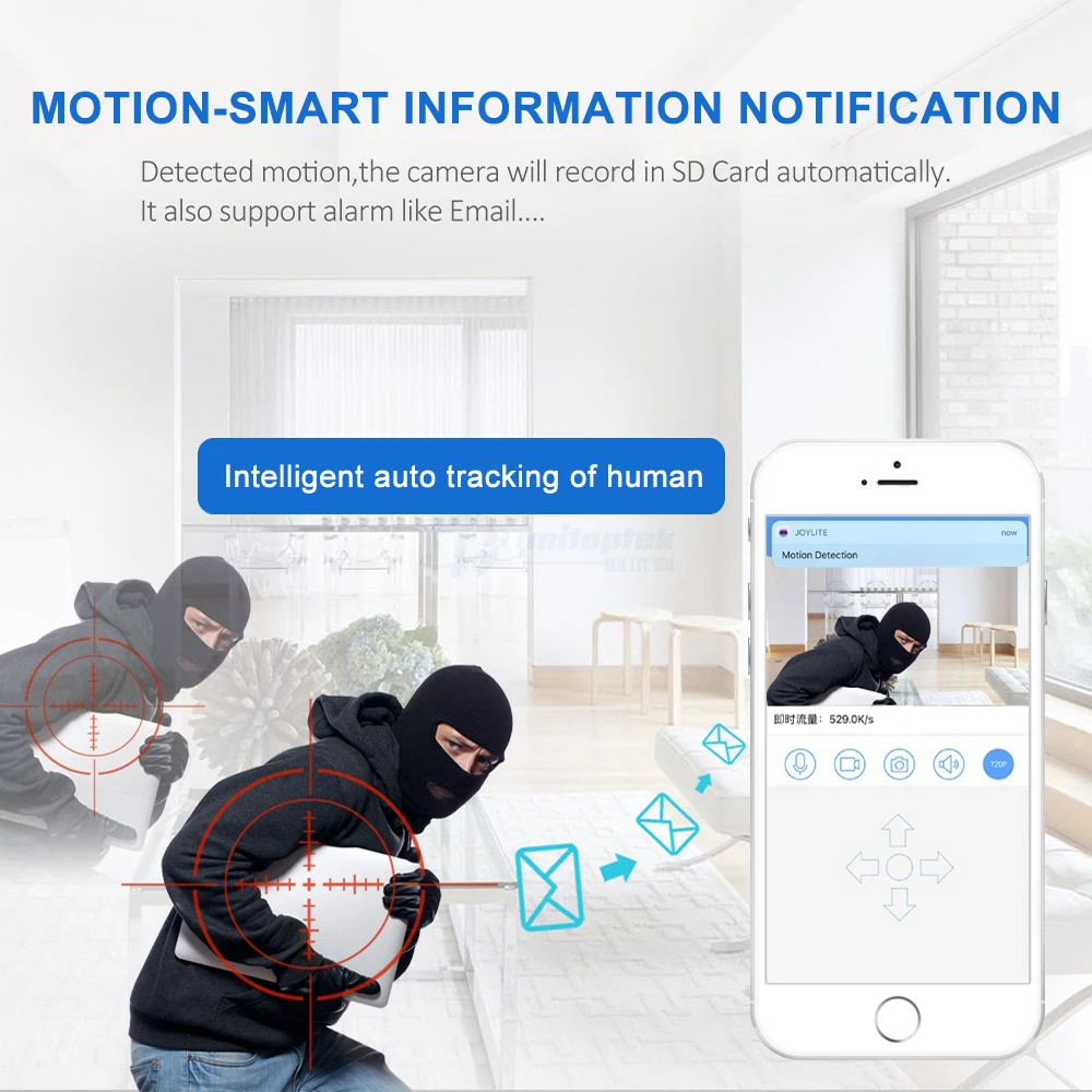 -Четко с подкладкой аудио Где бы вы ни были, вы можете быть ближе к своей семье, слышать и говорить с близкими. -Четкое ночное видение Встроенный инфракрасный светодиодный светильник, 8 шт., для ночного видения, до 10 м, постоянный, 24/7. -Сигнализация обнаружения движения Все подозрительные движения, брошенные в глаза камеры, будут обнаружены и записаны, в результате чего ворам и разбойникам будет негде скрываться. -Настоящий Plug and Play Поддерживая функцию подключения Wi-Fi одним касанием, во всем процессе подключения к сети не требуется ни одного Ethernet-кабеля. -Разрешение HD 1080P 2.0MP изображение высокой четкости, прозрачные и тонкие изображения. Максимальный размер изображения 1920*1080.