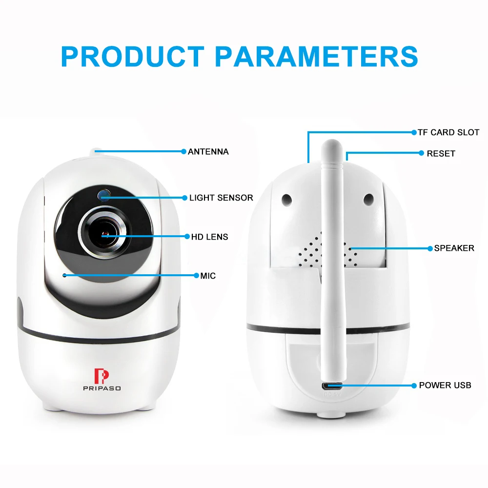 IP-камера Pripaso с автоматическим отслеживанием, домашняя камера безопасности с ии, 1080P, Беспроводная мини-камера, Wi-Fi, интеллектуальное ИК Ночное Видение