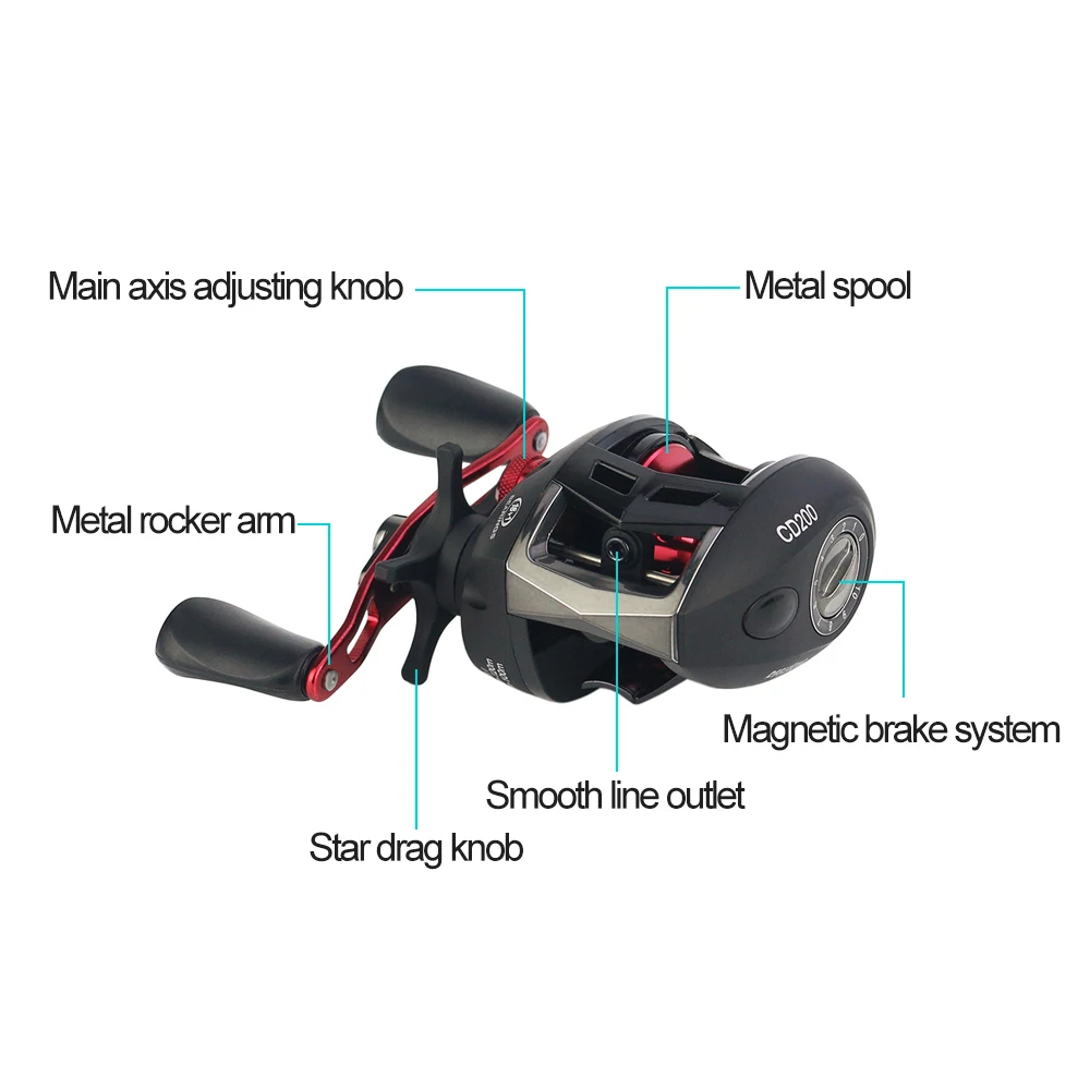 Особенности:Шаровой подшипник 12 + 1 обеспечивает более низкое трение и легкость намотки без придания излишнего веса.7,3: 1 передаточное отношение для плавного забрасывания и борьба с большой рыбки.Регулируемая магнитная тормозная система, высокая мощность торможения до 11,0 фунтов.V-образная катушка и глазурованная розетка из алюминиевого сплава обеспечивают гладкую катушку и наматывание.Высокопрочный нейлоновый корпус уменьшает вес, но не очень высокие характеристики.Эргономичная ручка с нескользящей ручкой для удобной работы.