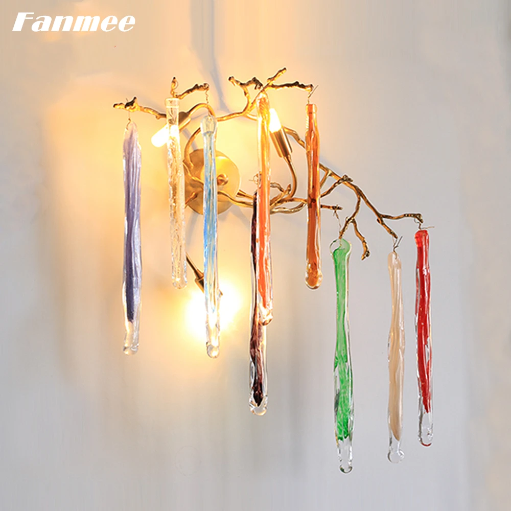 Цветной стеклянный современный настенный светильник, светодиодный роскошный светильник с медной веткой, настенный светильник в стиле арт-деко, приспособление для спальни, веранды, дома