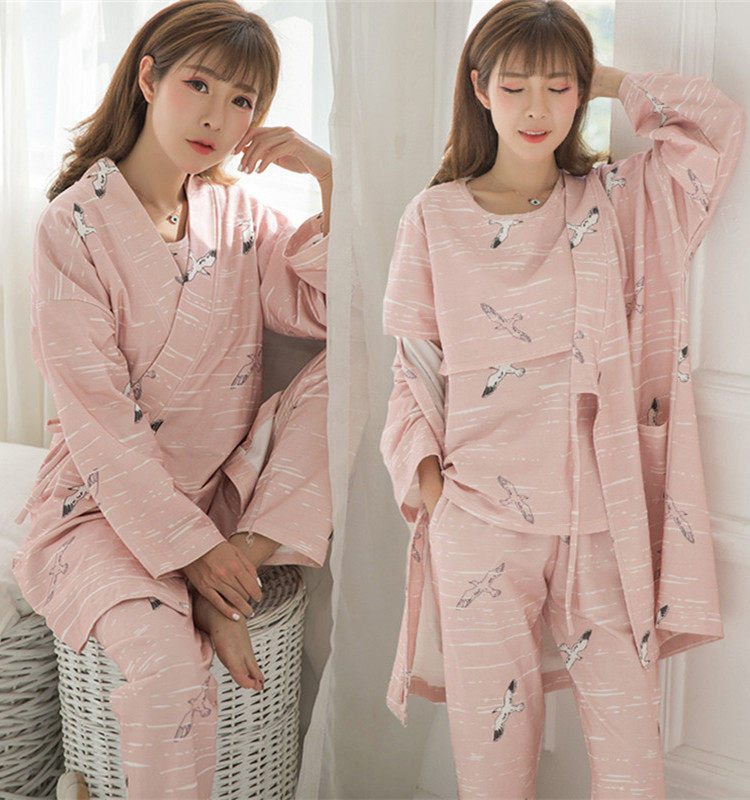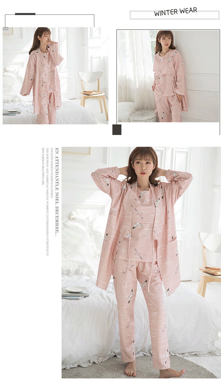 Женский пижамный комплект для беременных из 3 предметов: кофта с принтом + футболка + штаны, мягкая Пижама для беременных, одежда для сна, спортивный костюм для беременных