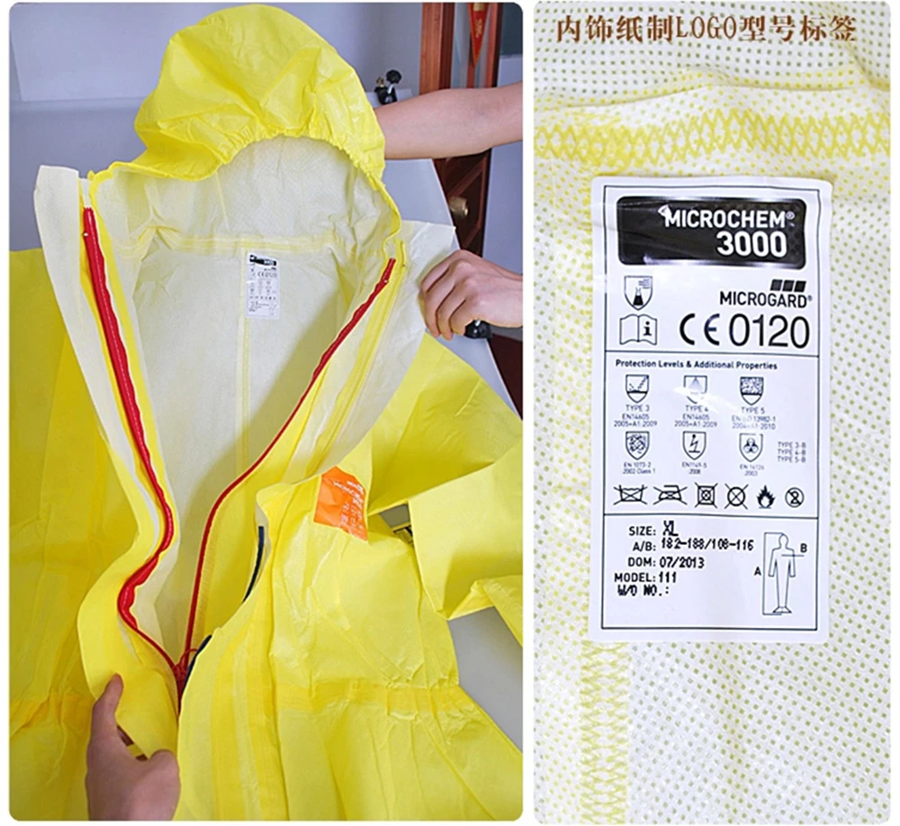 3000 желтый Химически стойкий с капюшоном легкий комбинезон серная кислота щелочь безопасная Защитная лабораторная биохимическая одежда
