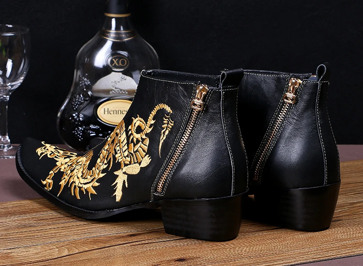 Мужские ботинки челси из тисненой кожи NIS черные плюшевые ботильоны с острым