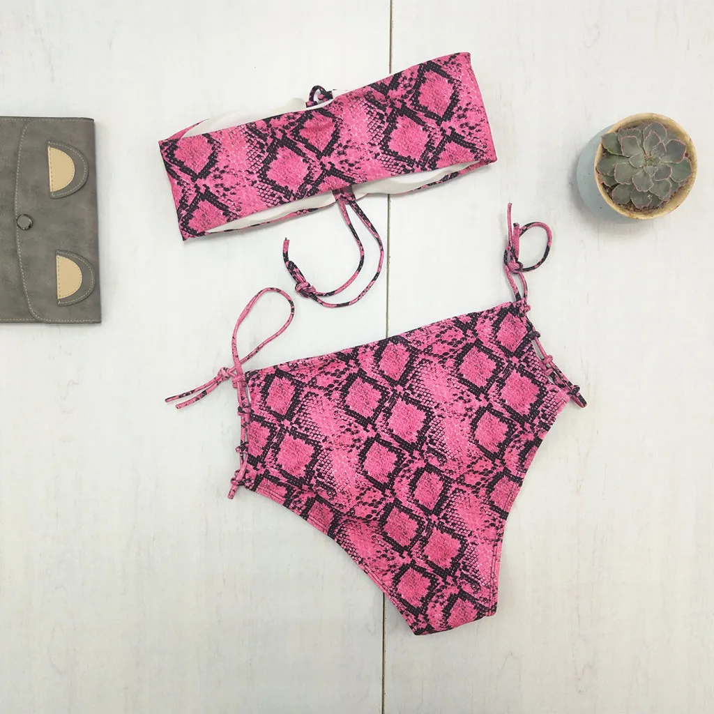 Женский купальник-бикини с принтом под змеиную кожу, Раздельный купальник, пляжный костюм