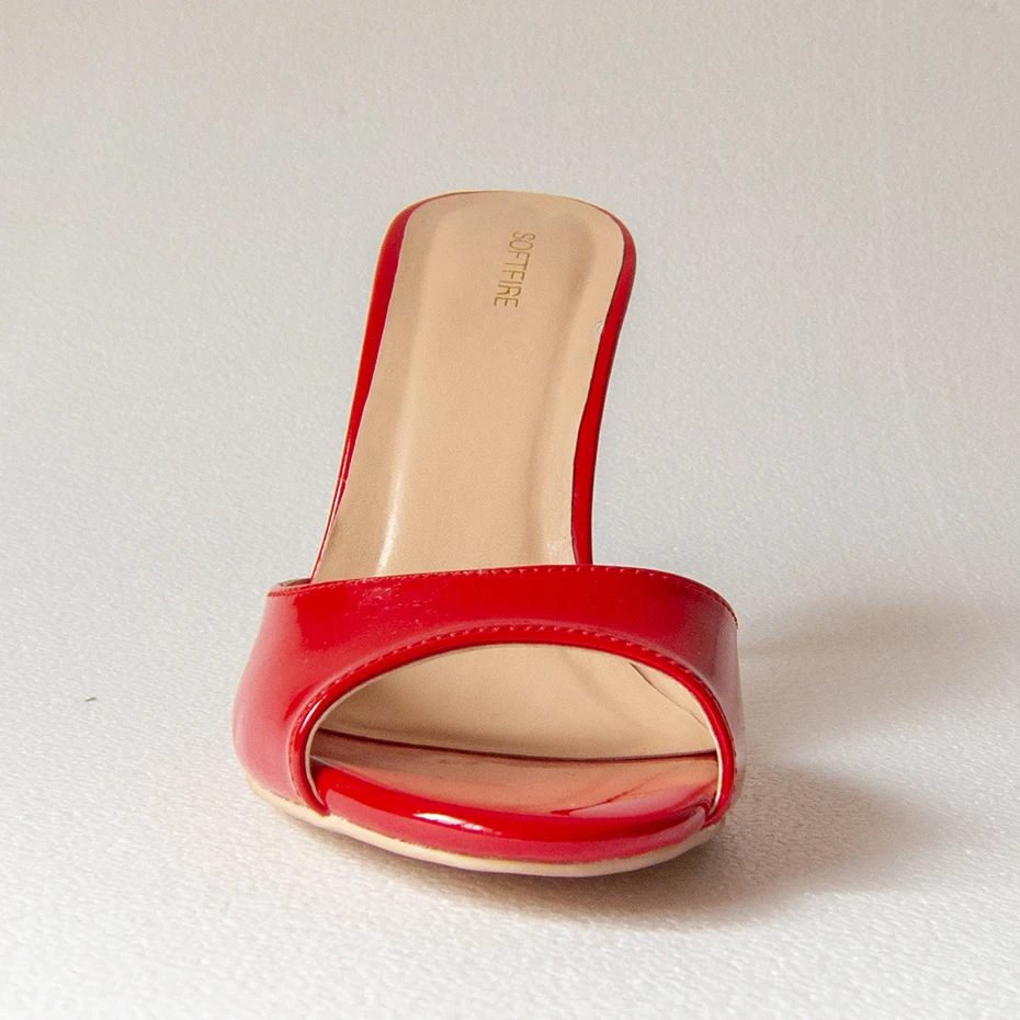 - SURU 95/Красные босоножки из лакированной кожи; Женские шлепанцы с открытым носком на высоком металлическом каблуке; Размеры 35-40; Большой размер 41, 42, 43, 44, 45, 46