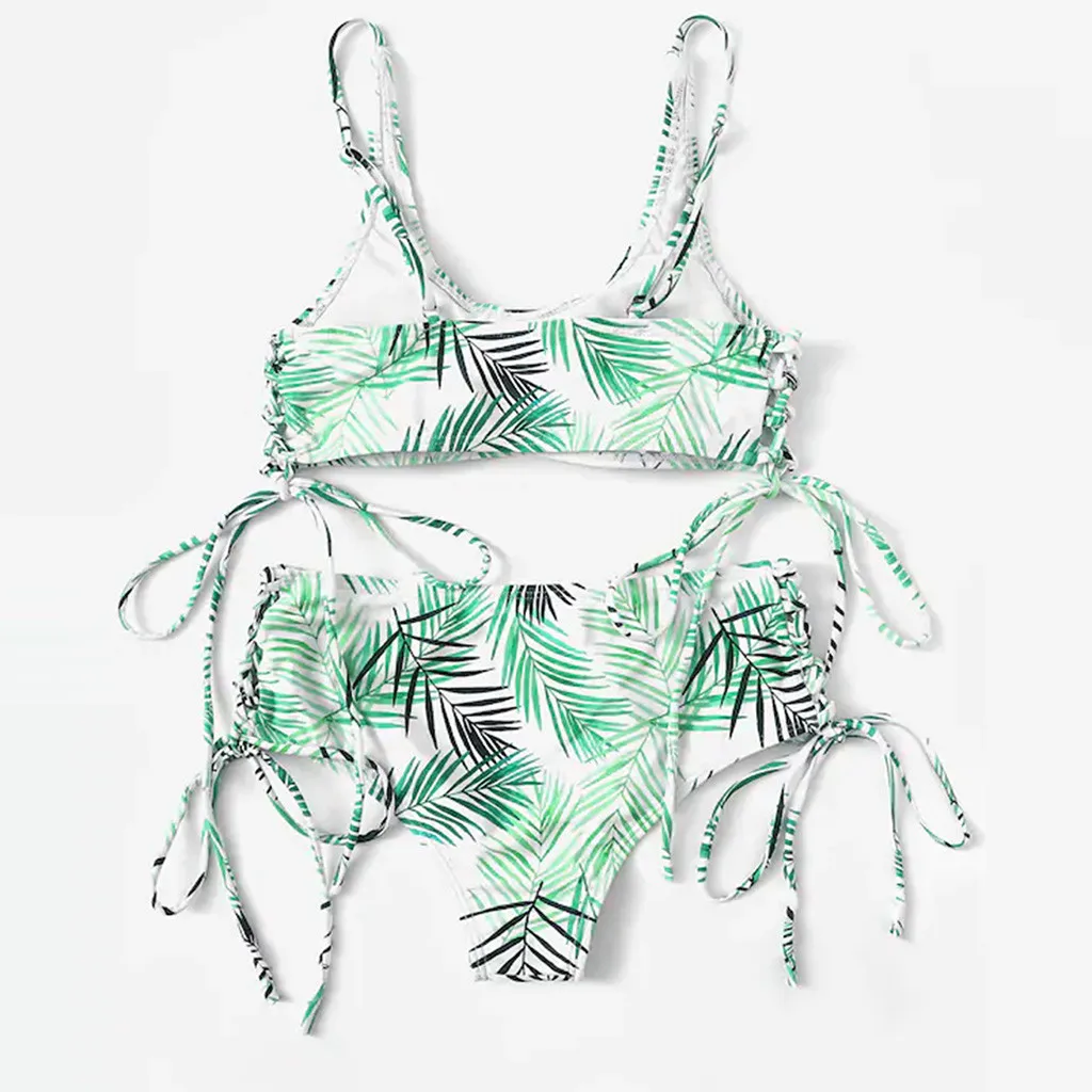 Женский купальник, пляжная одежда с принтом из 2 частей бикини купальник купальный костюм