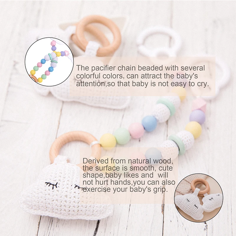 Материал: силикон + дерево Возраст: 0-12 месяцев 13-24 месяцев Особенность: музыкальный Предупреждение: нет Форма: животное Пол: унисекс Номер модели: игрушки для детской коляски Pro 1: пустышка Pro 2: погремушка с браслетами Про 3: играть в тренажерный зал
