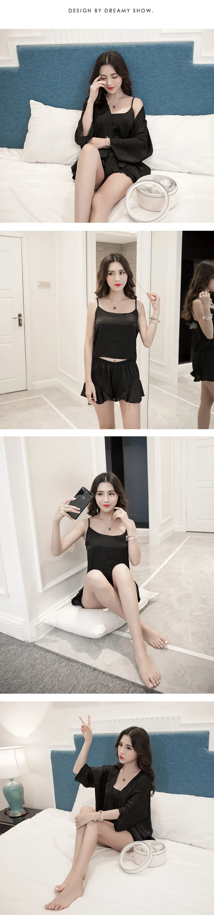 4 шт. шелковые пижамы женский халат + жилет + шорты + сумка для хранения пижамы для женщин домашняя одежда Удобная Пижама femme mujer домашний костюм