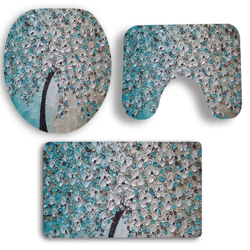 3 шт Печать Дерево ванная комната Нескользящая стойка для тряпок + крышка унитаза + набор ковриков для ванной