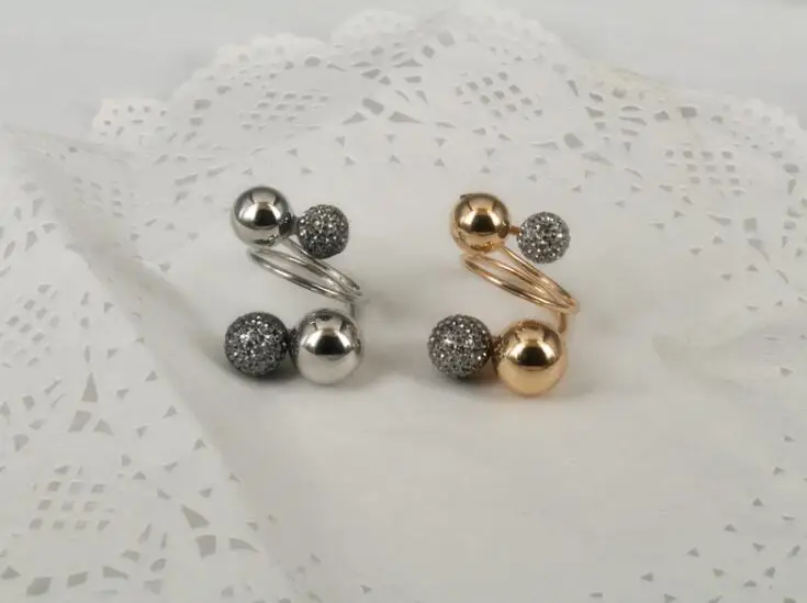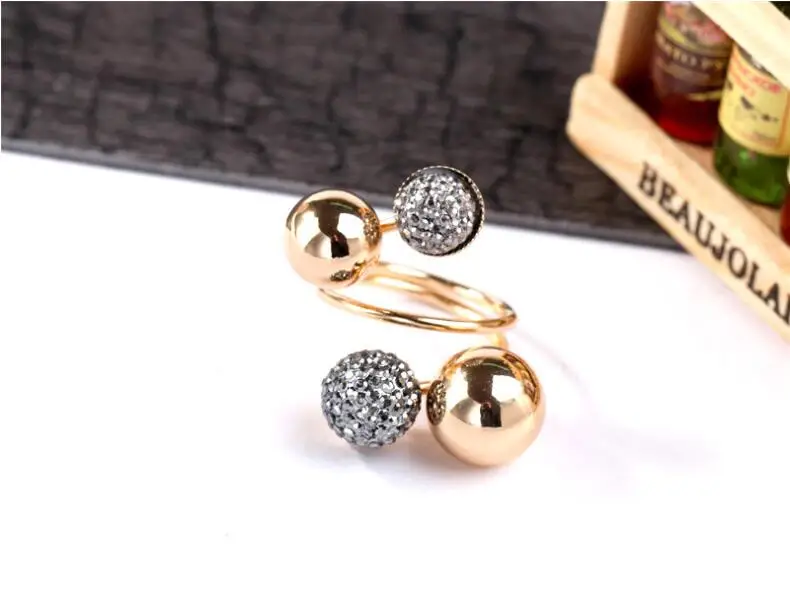 Регулируемый геометрический Сферический шар, Черное золото/серебро, полимерное кольцо в горошек, блестящее металлическое кольцо в стиле панк, женское ювелирное изделие