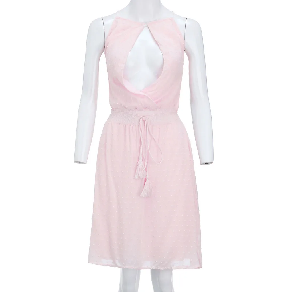 Особенности: без рукавов, с глубоким v-образным вырезом, однотонная, с открытой спиной, бандаж, мини-платье, мини-платье, пикантная одежда, летнее и весеннее платье.