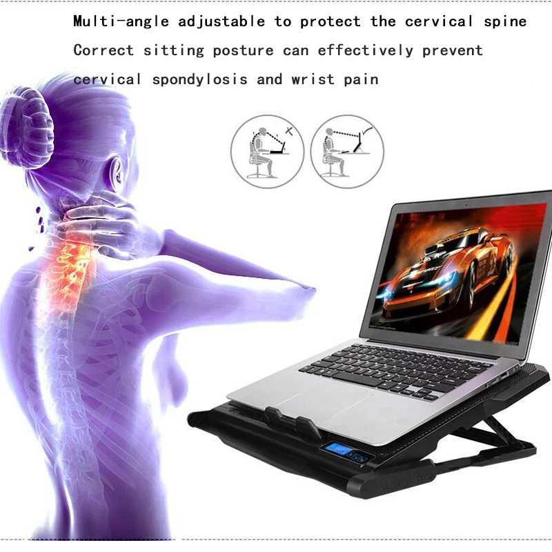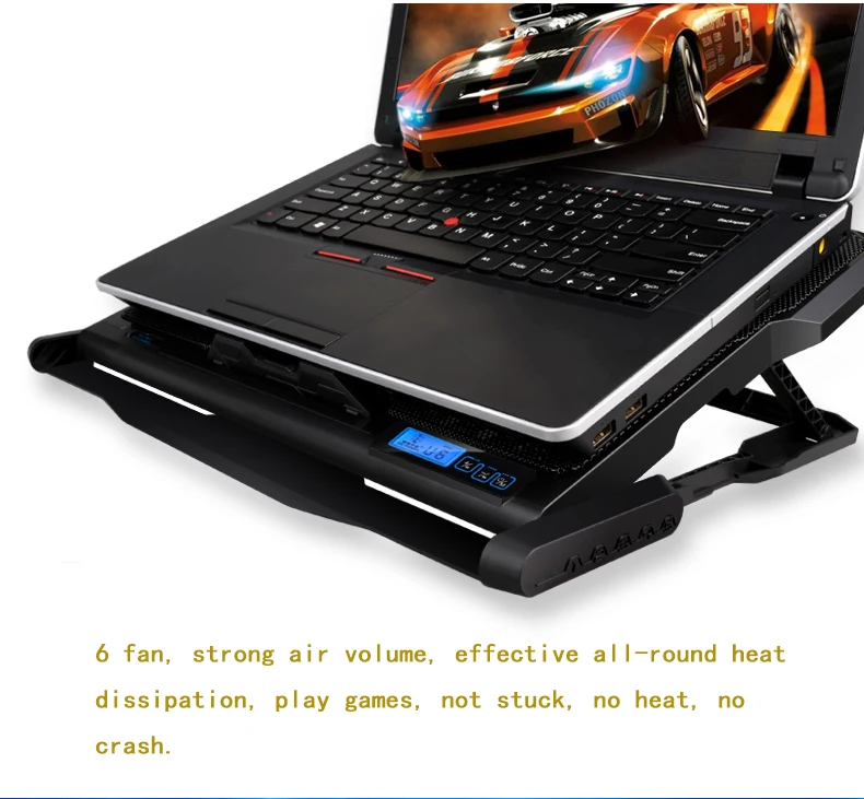 -Большая и крепкая металлическая панель. -Есть прочные нескользящие держателем и подставкой дизайн для защиты вашего компьютера. -Встроенный 6 Высокоскоростные Вентиляторы и светодиодный вентилятор тишина, как вентиляторы, так и светодиодный все может быть отрегулировано. -Есть с 2 портами (стандарт мощности дизайн, их можно заряжать портативным зарядным устройством или передача данных. -Игровой дизайн в стиле, костюм для детей возрастом от 12-17 дюймового ноутбука.