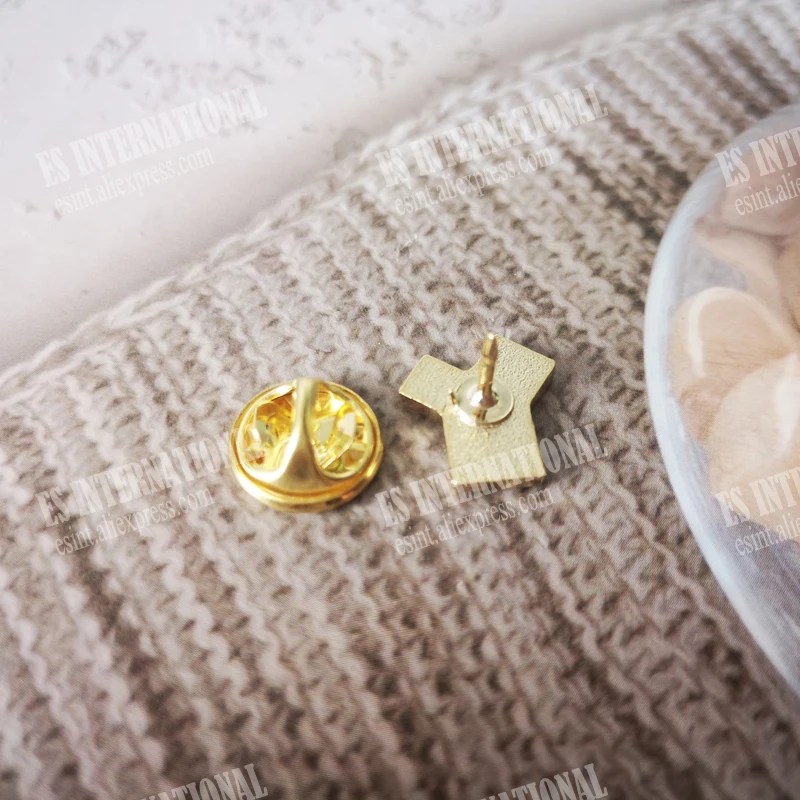 Размеры: 1,3*1,4 смМатериал: цинковый сплавПокрытие: блестящее покрытиеПроцесс: штамповкаЗадняя сторона: ПескоструйныйКрепление: бабочкаКлатч
