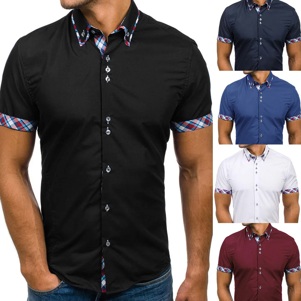 Мужская летняя футболка с двойным воротником, тонкая Лоскутная футболка с короткими рукавами, топ, блузка