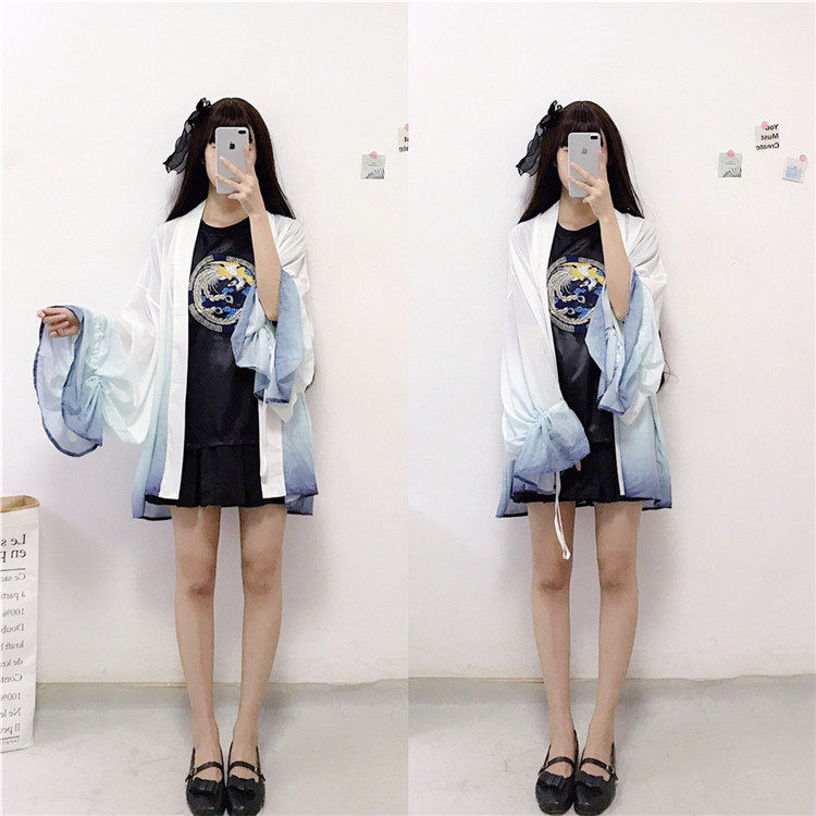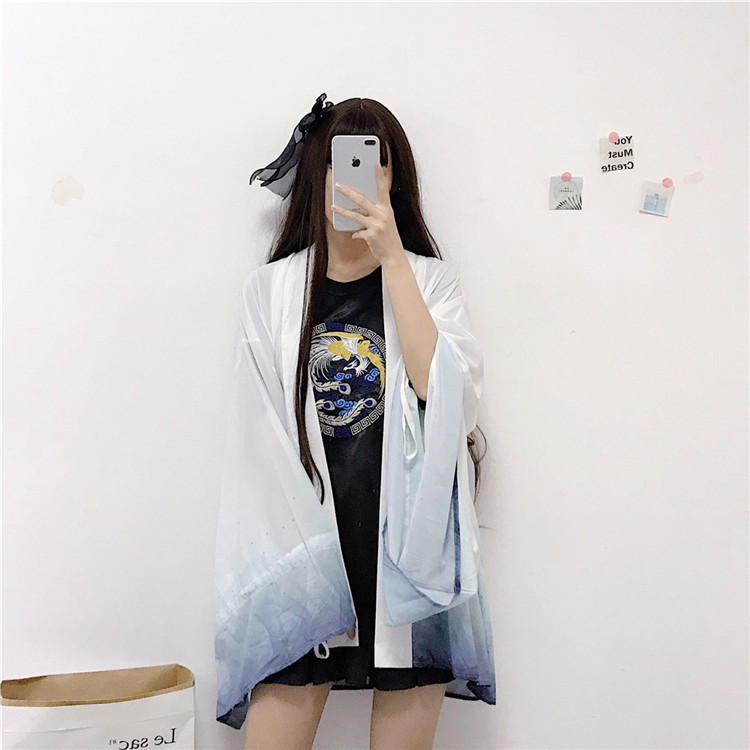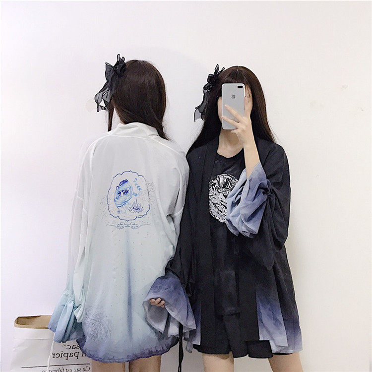 Харадзюку, китайский стиль, цифровой принт, 2019, летнее кимоно, кардиган, feminino, верхняя одежда, Солнцезащитная рубашка для женщин
