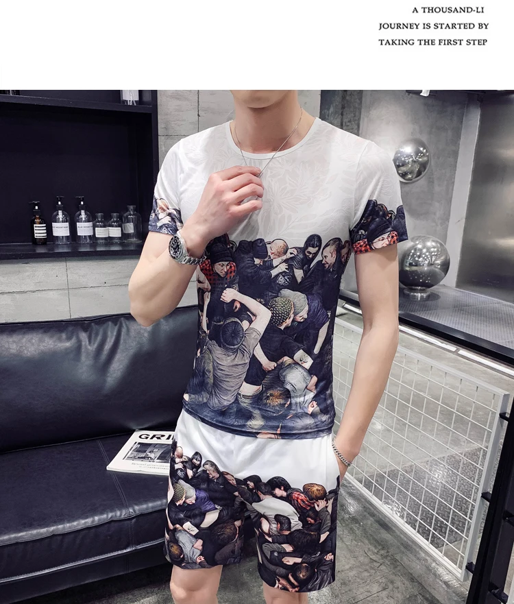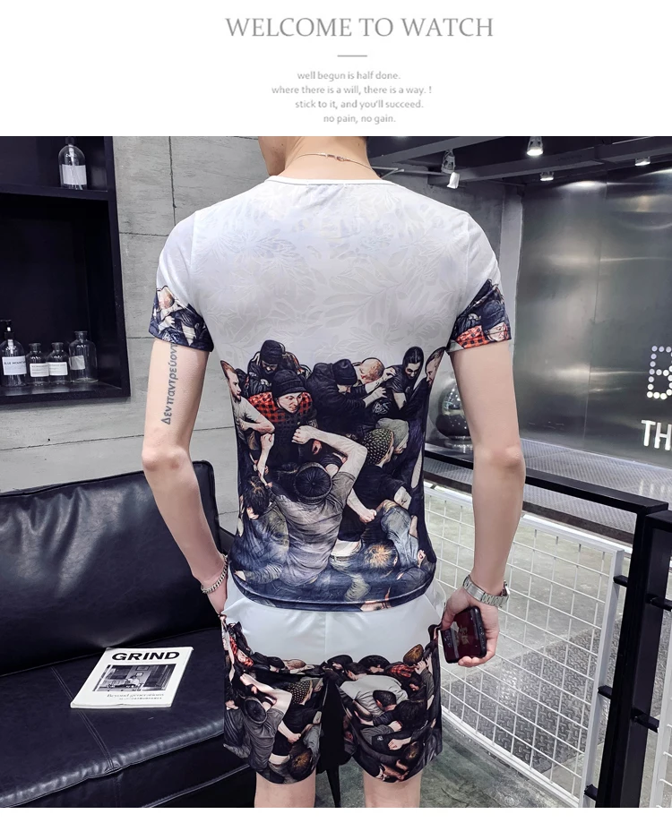 Новый Модный комплект из 2 предметов полосатая рубашка Мужской пуловер + шорты