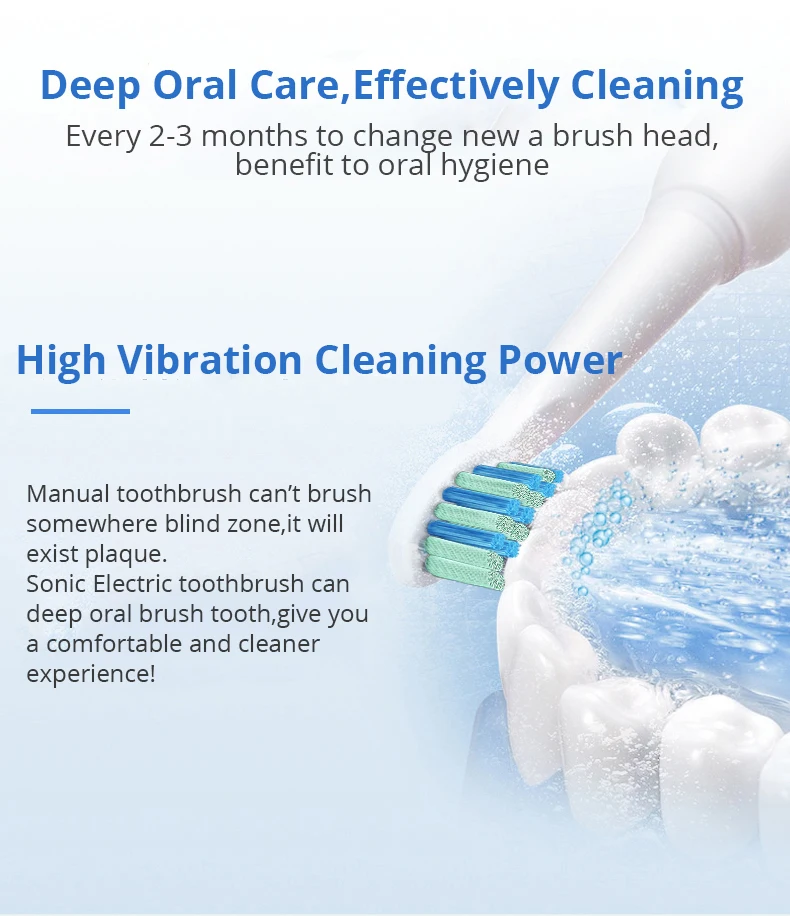 Звуковая электрическая зубная щетка для взрослых Seago SG-507 перезаряжаемая зубная щетка 5 режимов Глубокая чистка полости рта мягкая щетина Dupont О товаре: 1. Концевая закругленная нейлоновая щетина DuPont, мягкая и удобная, полированная для износостойкой очистки, мягко и эффективно достигает глубины между зубами и вдоль линии gumline 2. Пять режимов чистки белого, чистого, чувствительного, полированного и массажного для удовлетворения различных потребностей в уходе за полостью рта. Звуковой Вибрационный 40000 ударов в минуту, удалите налет 3.2 минут смарт-таймер с 30 секунд интервал, чтобы поощрить стоматолог-рекомендуется чистить привычки. USB зарядка с индикаторным светильник, легкий и удобный для использования дома или в путешествиях 4.Водонепроницаемый IPX5, Полностью моющийся, но не замачивайте его в воде и всегда убедитесь, что крышка USB правильно запечатана. Поставляется с двумя сменными головками кистей Посылка список: 1 Ручка зубной щетки 8 шт. сменные головки кистей 1 взаимный обмен данными между компьютером и периферийными устройствами Зарядное устройство Примечание: Есть также различные комбинации зубных щеток и сменных головок, пожалуйста, внимательно проверьте перед покупкой!