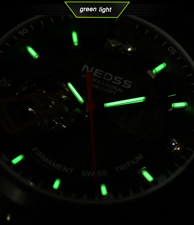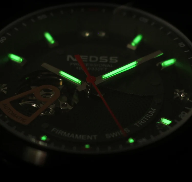 Роскошные Лидирующий бренд NEDSS Swiss H3 tritium часы автоматические механические наручные часы сапфир 100 м водонепроницаемые часы для мужчин США 287/Шт/Лот 1