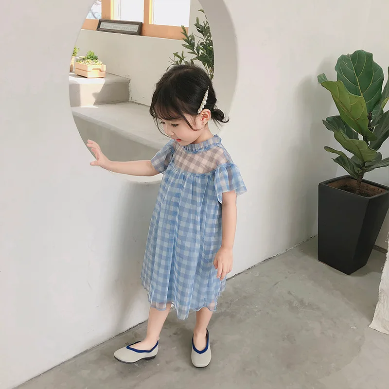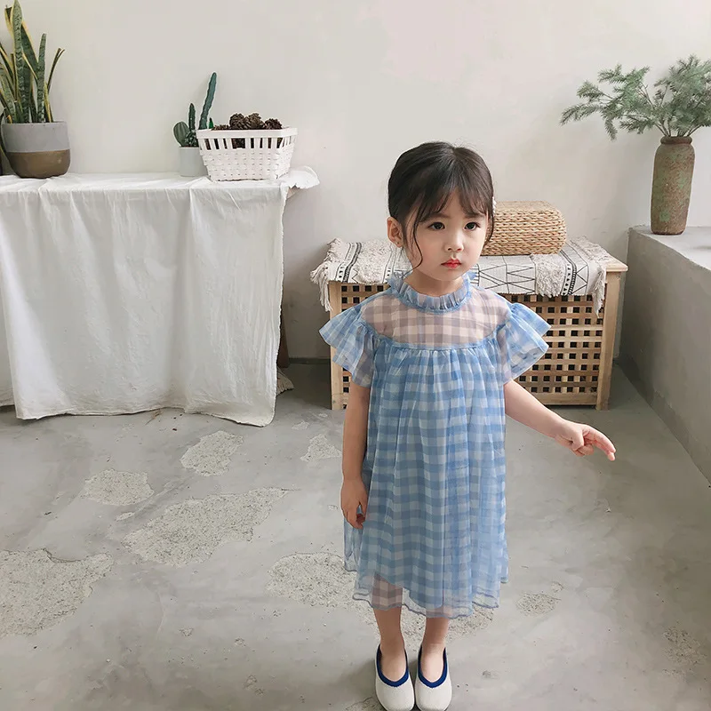 Tulle Dresses For Toddler Girls Ruffles Collar Baby Girl Dress Clothes Summer 2019 A Line Blue White Plaid Children Clothing 2 3 4 5 6 7 8 9 10 11 12 13 14 15 years little short sleeve kids dresses for girls 3 to 4 years