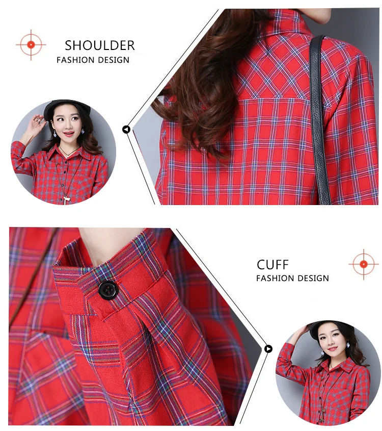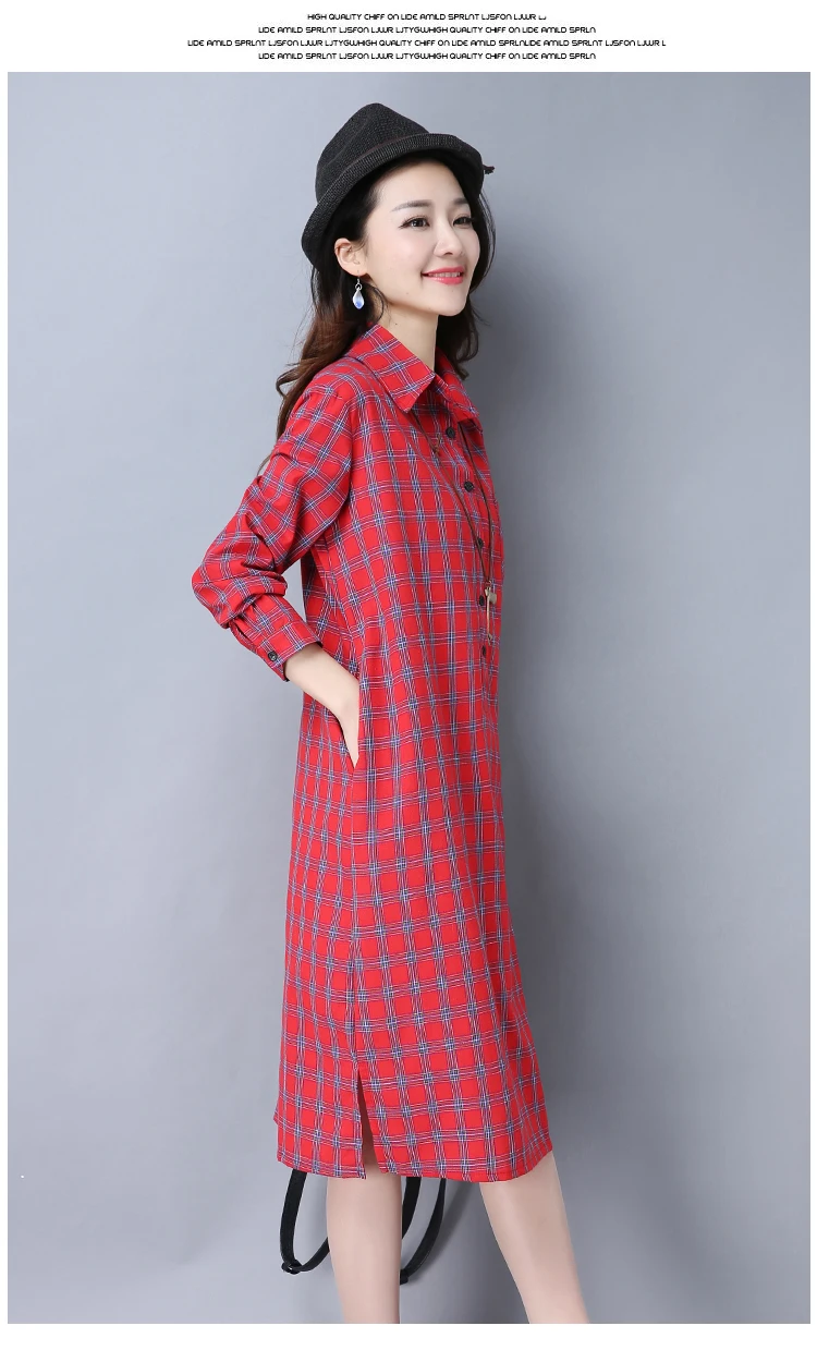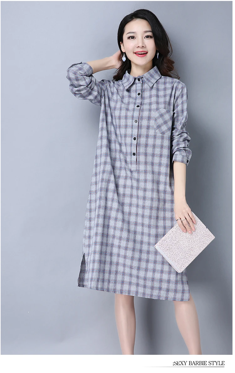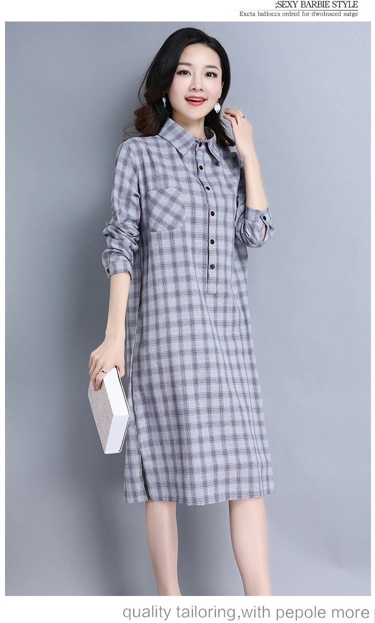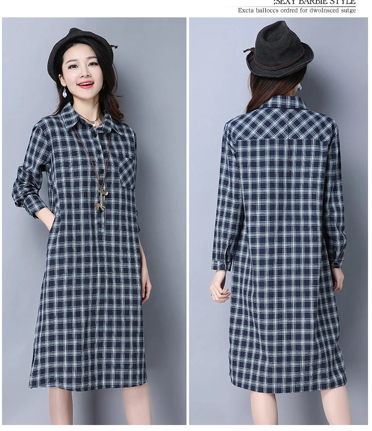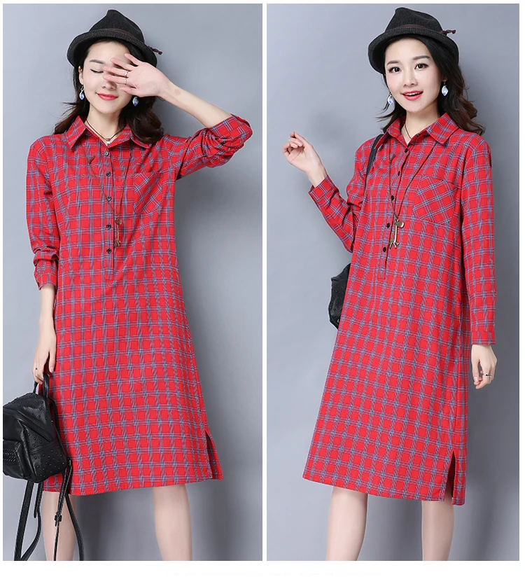 Женское клетчатое платье-рубашка, женские блузки, топы, весна-осень 2019, женская одежда размера плюс, свободная блузка с длинным рукавом, длинные платья ZY563