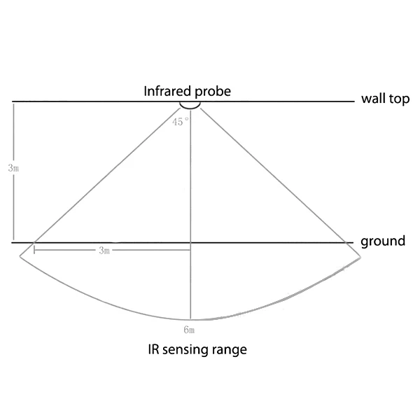 -При установке, пожалуйста, отключите питание для того чтобы гарантировать безопасность -Не применять его к перегрузки тока или напряжения -Не требует установки доступными для воды -Расстояние обнаружения будет меняться в зависимости от температуры окружающей среды разница. В летний период, расстояние обнаружения коротка (очевидно в тех случаях, когда почти соответствуют углу обзора человека температуры тела); В зимнее время, расстояние обнаружения будет гораздо -Не устанавливайте его в ниже-20 градусов по Цельсию или выше, чем 60 градусов Цельсия -Не помещайте ее солнечными лучами -Не требует установки, в котором есть движущихся объектов -В первый раз вкл находится в пределах нормы на одну минуту начала; В течение этого периода, устройство будет сиять, это нормальное явление, -В c oast зоны, тепловой поток будет триггер датчика из-за океана в настоящее время. При установке Светодиодная лампа накаливания излучает тепла, пожалуйста, держите подальше от датчика (не менее 1 м)