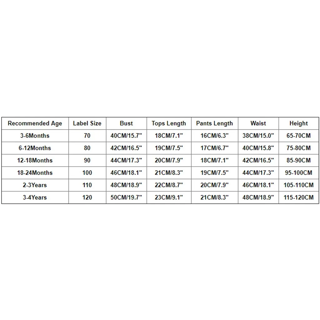 | Рекомендуемый возраст | Размер этикетки | Бюст | Длина топа | Длина брюк | Талия | Высота |