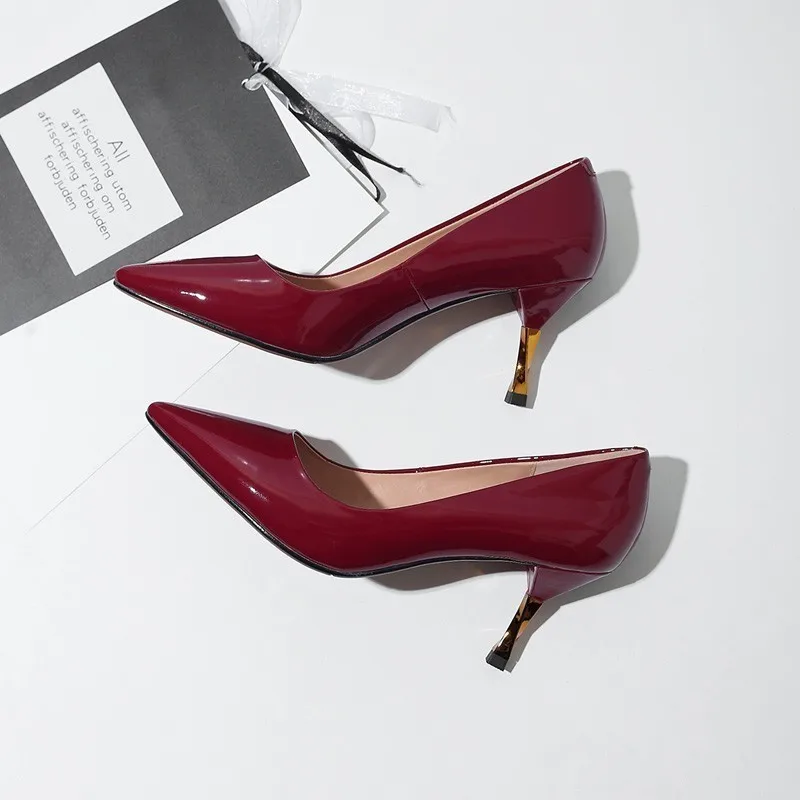 Модные пикантные черные модельные туфли-лодочки Элегантные туфли на высоком каблуке абрикосового цвета для работы и вечеринки Пикантные винно-красные туфли на высоком каблуке для свиданий