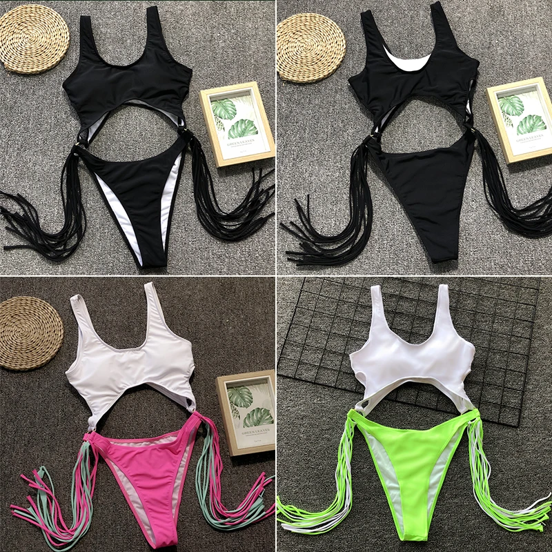 Женский купальник с бретелькой через шею сексуальный пуш ап вырезами желтый