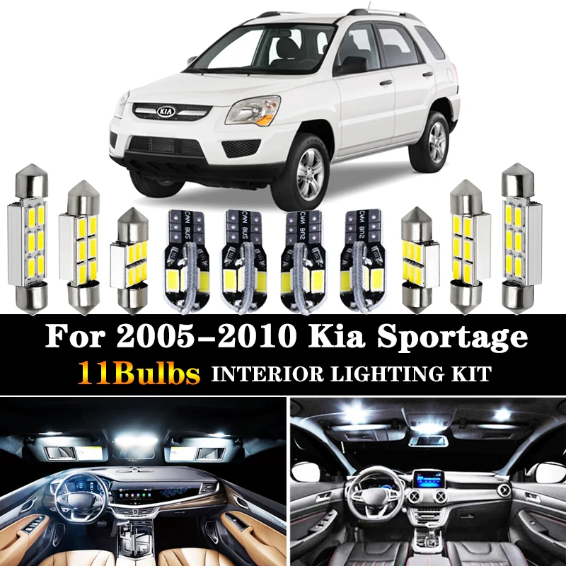 Этот список представляет собой белый набор для внутренней посылка 11 шт. для Kia Sportage 2005-2010 Наш Светодиодный Светильник изготовлен из более ярких чипов премиум класса 5630 SMD, которые имеют более длительный срок службы по сравнению с другими.