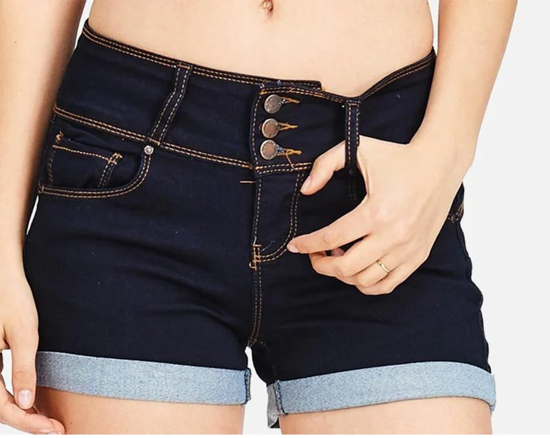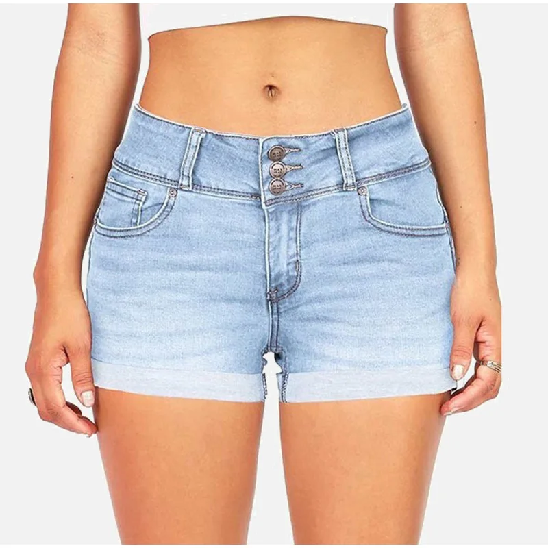 Женские джинсовые шорты с высокой талией и пуговицами