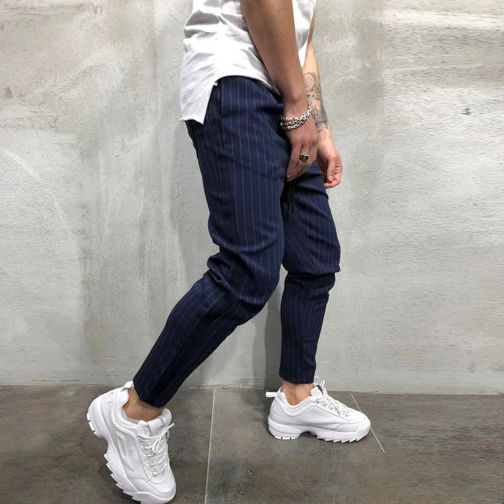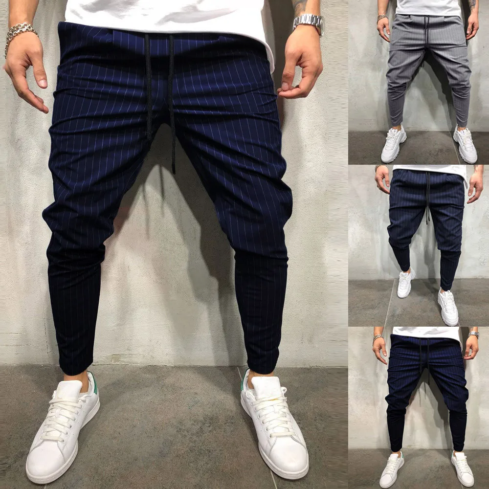 Модные мужские повседневные однотонные свободные брюки в полоску с карманами; Брюки для бега