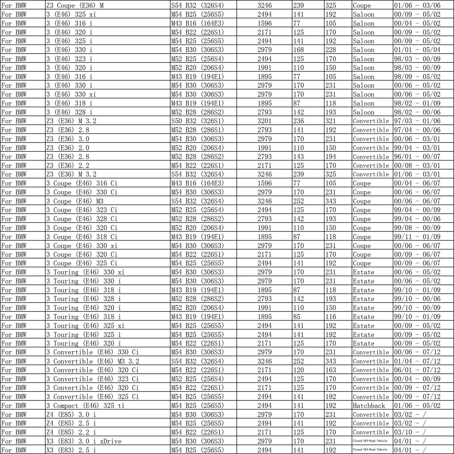 Для BMW 3 E46 1998 1999 2000 2001 2002 2003 2004 2005 316i(M43B19) 318i(M43B19) 320i 323i 325i 325xi 328i 330i 330xi 316ci(M43B19) 318ci(M43B19) 320ci 323ci328ci 330ci M3 325ti