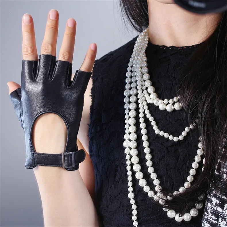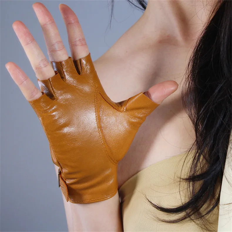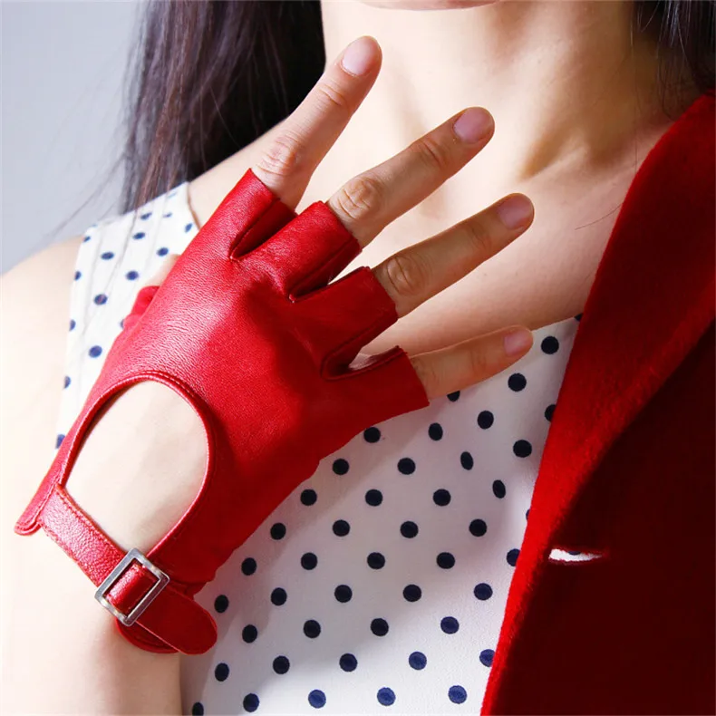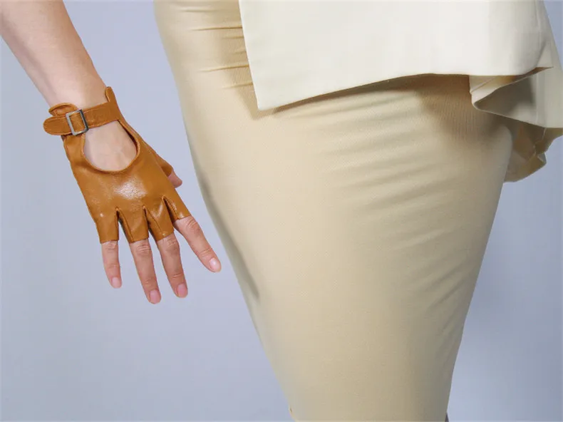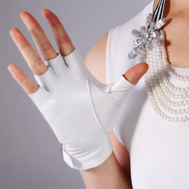 Перчатки из натуральной кожи с полупальцами; Цвет белый, серебристый; С квадратной пряжкой; Ультратонкие перчатки из чистой овчины без пальцев для вождения; Сезон весна-лето; WZP14