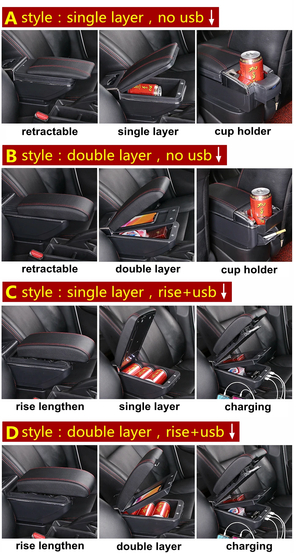 Стиль D: двойной слой, есть USB, нет подсветки, может подъем, выдвижной, не может вращаться.