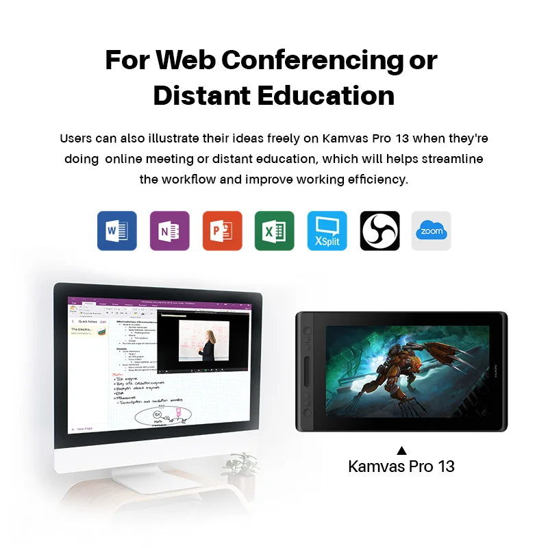 Показывая 13-в IPS экран, вес Kamvas Pro 13 составляет около 1 кг и толщина составляет 11 мм, только немного толще, чем мобильный телефон. Его легко положить в рюкзак и носить с собой.