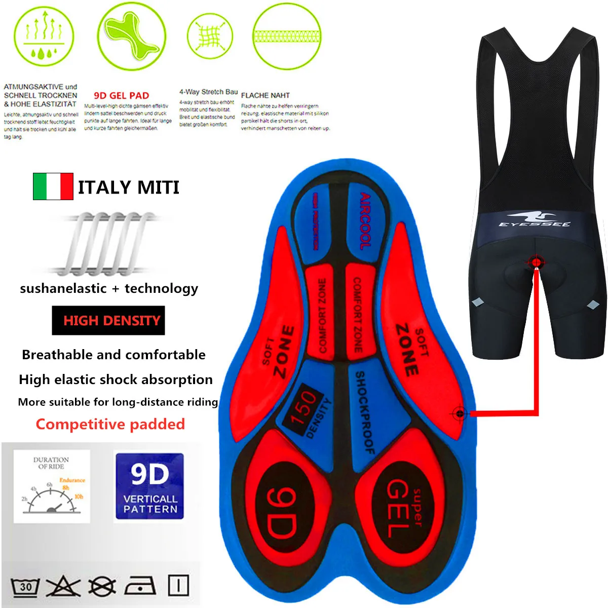 Процесс пошива тормозов, две отражающие пленки на спине, итальянские силиконовые манжеты, дышащая 9D силиконовая подушка