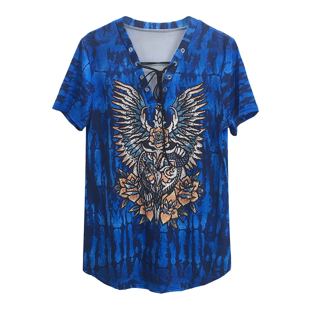 Женская Повседневная футболка с v-образным вырезом и принтом в стиле ретро в национальном стиле