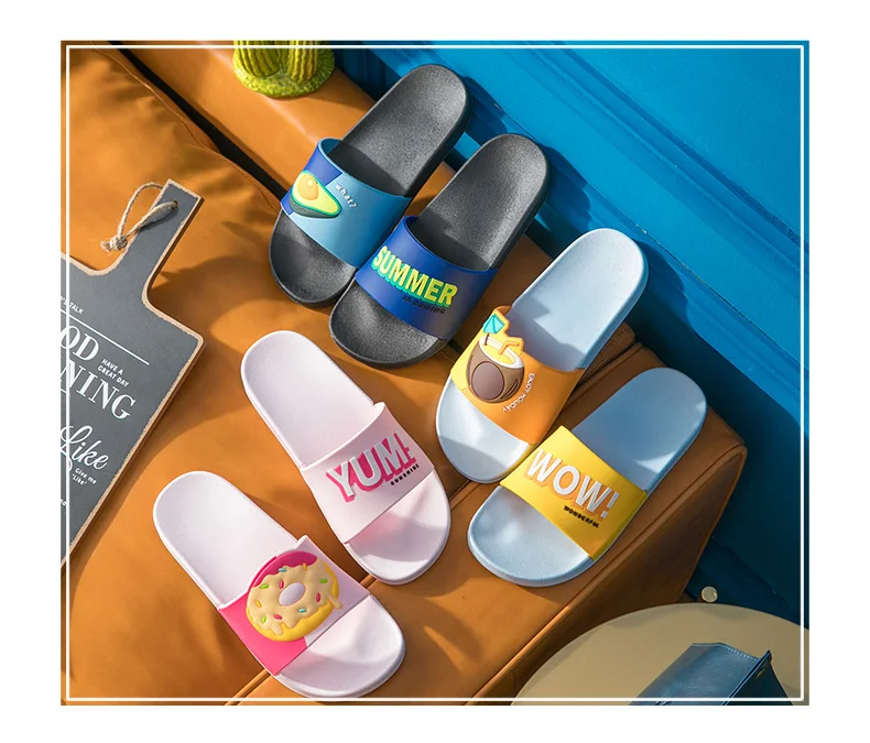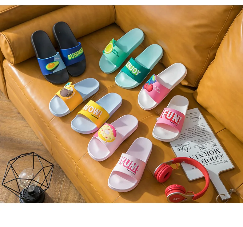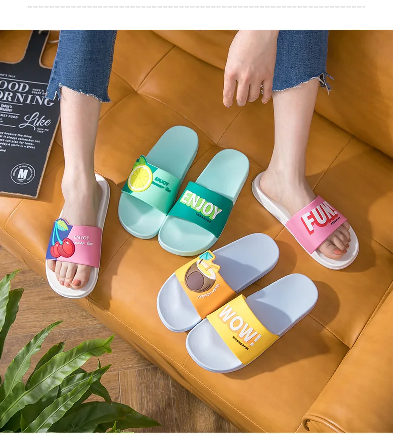 Женские тапочки с милыми фруктами; летние шлепанцы без задника с рисунком лимона и вишни; домашние тапочки; сандалии на толстой подошве; женская обувь; женские вьетнамки