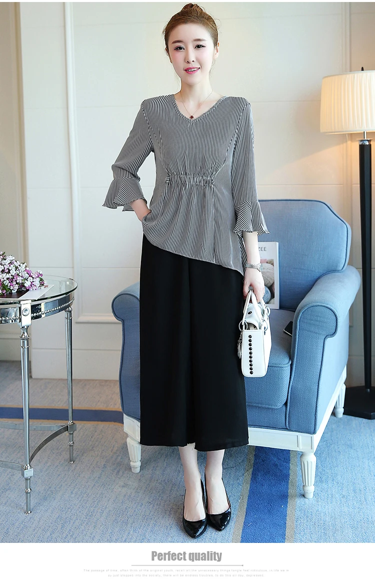 Летняя женская блузка костюм брюки костюмы 2 шт наборы полосатая рубашка и для