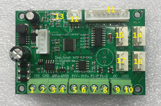 1. Ознакомление с функциями этого управляющегоЭтот регулятор контроля температуры JCF4846 использует технологию модуляции PWM для реализации контроля температуры вентилятора и регулирования скорости. Это промышленная схема, простая в использовании, Стабильная и надежная, особенно подходит для элитных корпусов!Основные функции заключаются в следующем:1. Регулятор контролирует скорость вентилятора в соответствии с обнаруженной температурой. Чем выше температура, тем быстрее скорость. Когда температура выше начальной степени, вентилятор начинает работать с низкой скоростью. Если температура продолжает расти, скорость вентилятора медленно увеличивается. Когда температура поднимается до установленной полной температуры, вентилятор превращается в полную скорость работы. Когда температура начинает падать, скорость вентилятора автоматически падает, а температура опускается до исходной температуры-2. Когда температура высокая, вентилятор закрыт и циркулирует.2. Запуск и полноскоростная температура могут быть установлены клавишами3. У управляющего есть собственная цифровая трубка, которая может отображать температуру тока. Диапазон отображения температуры-9 ~ 99 С.4. С 485 последовательным портом связи и стандартным протоколом Modbus RTU, он может подключаться к PLC или промышленному компьютеру для получения информации о состоянии температуры и вентилятора.5. Звуковой сигнал, при обнаружении неисправности вентилятора, звуковой сигнал6. Поддержка количества вентиляторов, подключенных к управляющему, для точного определения состояния работы каждого вентилятора.7. Когда температура ниже температуры запуска, настройте настройки остановки вентилятора или Поддерживайте минимальную скорость8. Регулятор имеет свой собственный выход сигнала NPN (который может быть подключен к входу переключения PLC). При обнаружении неисправности вентилятора, регулятор выводит слабый сигнал, вызывая раннее предупреждение.II. Основные технические параметры1. Поддержка все виды 12v/24v/36V/48v 4-провод PWM вентилятор постоянного тока, максимальный ток 6A2. Схема промышленного класса, с защитой от обратного соединения, автоматическая установка SMT и сварка, 100% заводской тест3. Предоставляем 4-полосная Стандартный 2510-4P вентилятор интерфейс + 1-way терминал интерфейс вентилятора4. Технология преобразования частоты, стабильная производительность, низкое энергопотребление, высокая эффективность5. Светодиодный индикатор, интуитивно и по-настоящему понимает рабочее состояние6. Стандартный 1% Высокоточный промышленный датчик температуры NTC, подходит для обнаружения температуры воздуха, ошибка 1 C7. Температурный Зонд запечатан эпоксидной смолой, водонепроницаемый и влагостойкий, с установочными отверстиями в верхней части зонда для облегчения фиксированной установки.8. Поддержка настройки, включая размер, Параметры температуры, дополнительные функции и т. д.3. Введение портов проводки