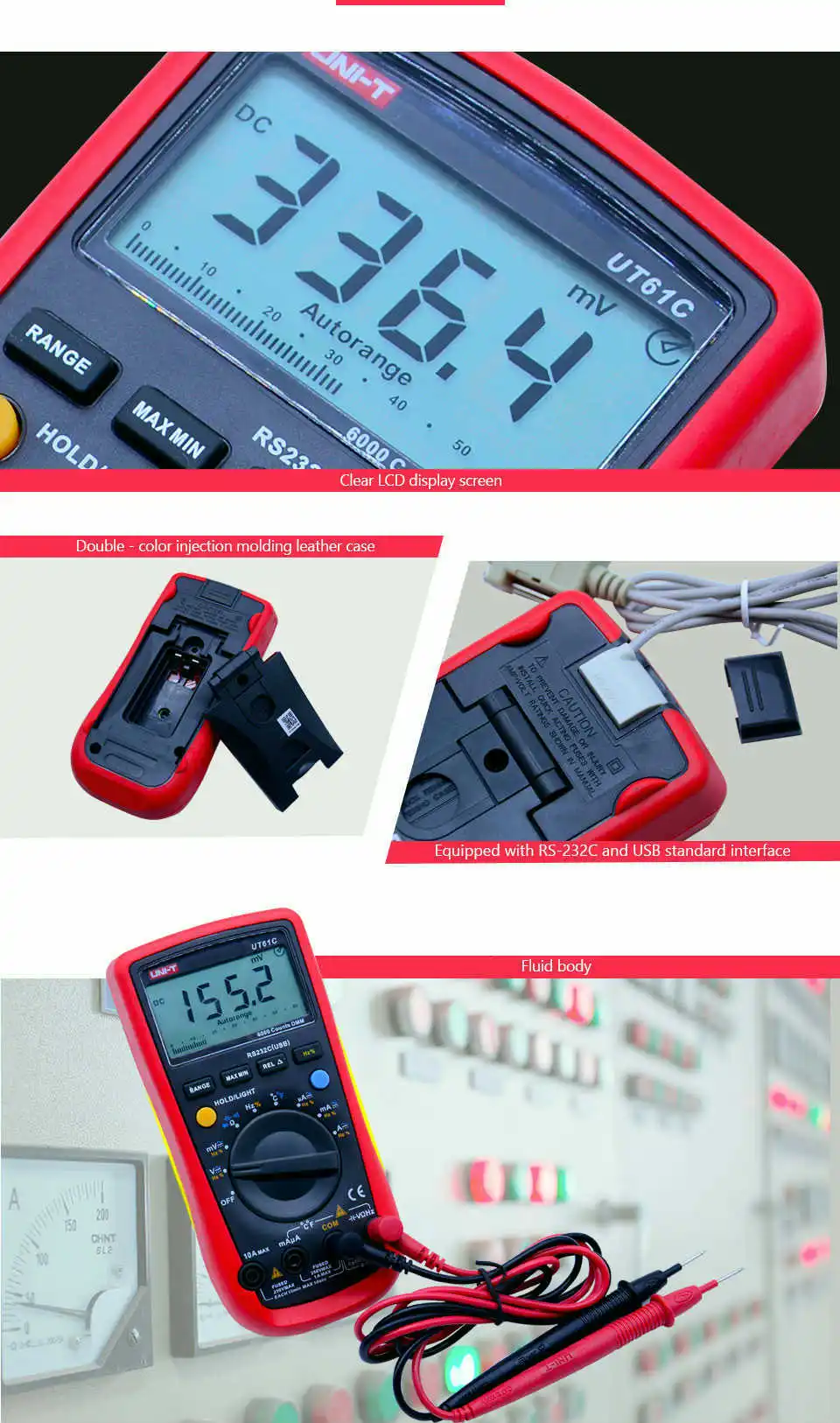 Цифровой мультиметр UNI-T UT61C AC DC Вольт Ампер метр Ом Емкость Частота Температура диод тестер RS232 PC подключения