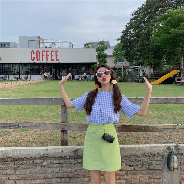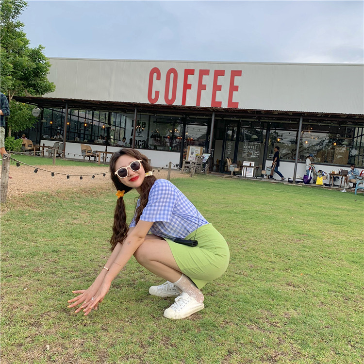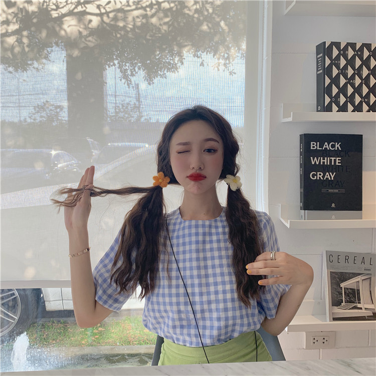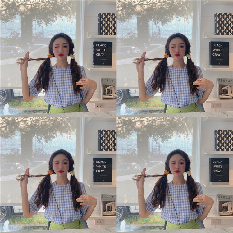 2019 летние мужские шаровары в клектку в Корейском стиле с коротким рукавом Свободные блузки женские рубашки женские топы