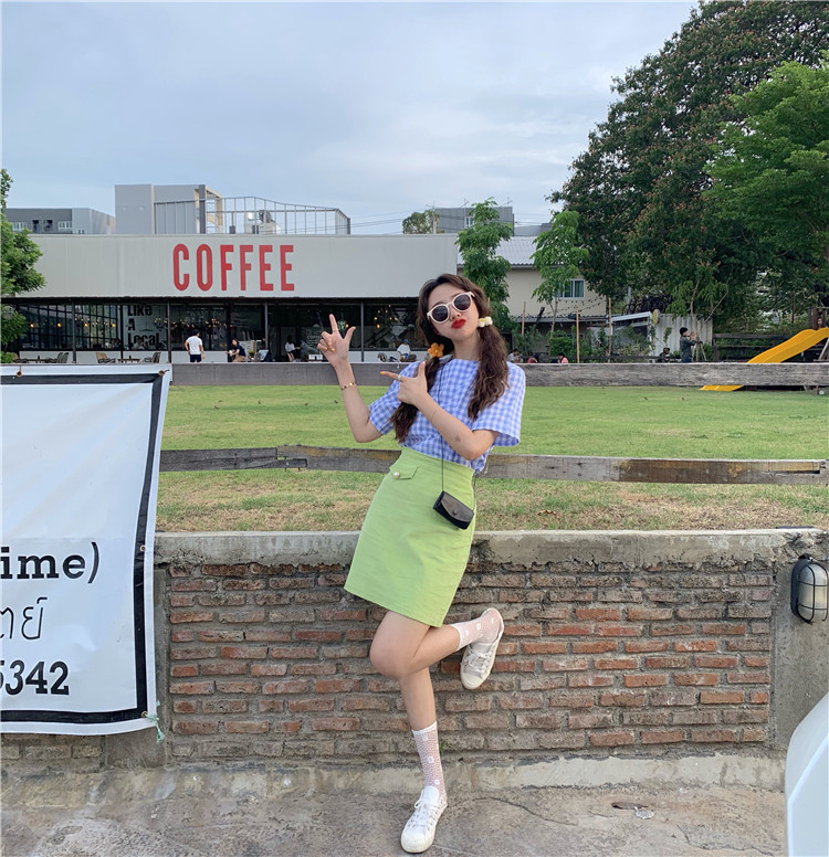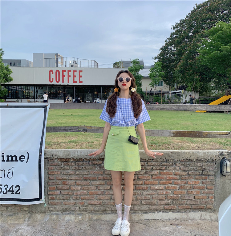Рубашка в клетку Размер Обхват груди: 94 см/37,6 дюйма, ширина плеча: 37 см/14,8 дюйма Длина одежды: 59 см/23,6 дюйма Длина рукава: 19 см/7,6 дюйма Футболка Размер Длина одежды: 43 см/17,2 дюйма, обхват груди: 72 см/28,8 дюйма Ширина плеч: 32 см/12,8 дюйма, длина рукава: 15 см/6 дюймов Юбка Размер Обхват талии, обхват бедер, длина S 66 см/26,4 дюймов 90 см/36 дюймов 43 см/17,2 дюйма M 69 см/27,6 дюймовый 93 см/37,2 дюймовый 45 см/18 дюймов L 72 см/28,8 дюймов 96 см/38,4 дюймовый 47 cm/18,8 дюйма Измеряется вручную, пожалуйста, позвольте нам 1-3 см ошибка
