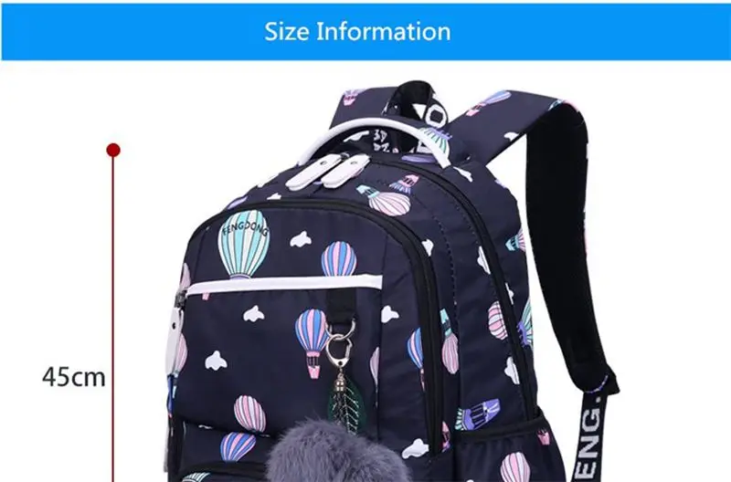 Размер рюкзака (приблизительно): длина 30 см; Ширина 14 см; Высота 45 см Материал: водонепроницаемый полиэстер Вес: 0,6 кг Применение: школьные сумки для девочек Стиль: школьные сумки/Школьный рюкзак/сумки для книг 1. Примечания: замеры сделаны вручную, поэтому возможны отклонения на 1-3 см. 2. Все измерения в см, пожалуйста, обратите внимание, что 1 см = 0,3937 дюйма, 1 дюйм = 2,540 см