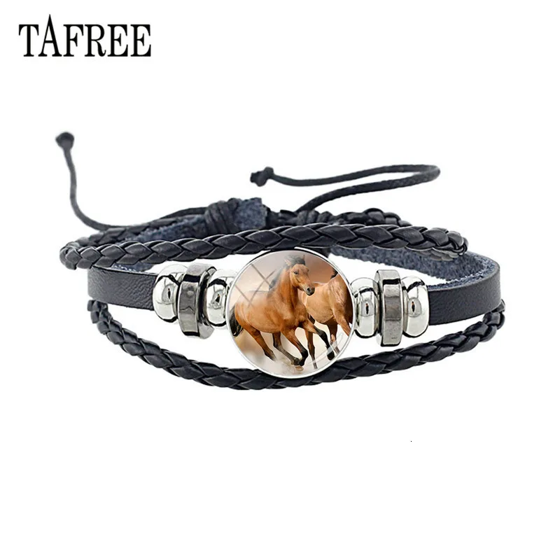 TAFREE модный белый черный лошадиный браслет регулируемый плетеный веревочный браслет стеклянный драгоценный камень животный узор Шарм Панк ювелирные изделия подарок A49