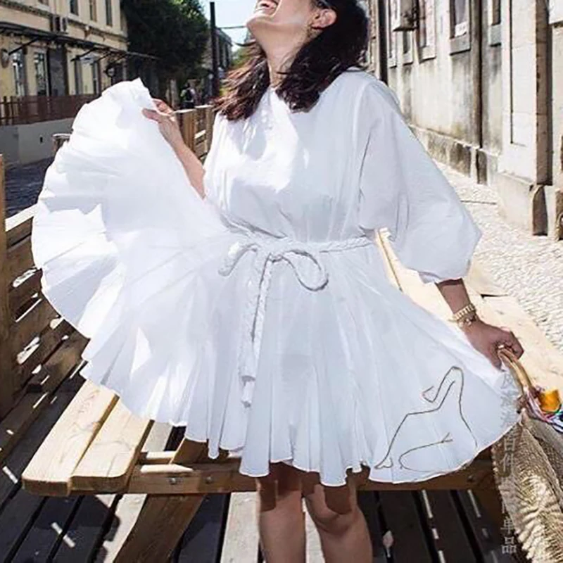 Женское шифоновое платье туника с длинным рукавом и круглым вырезом|Женские