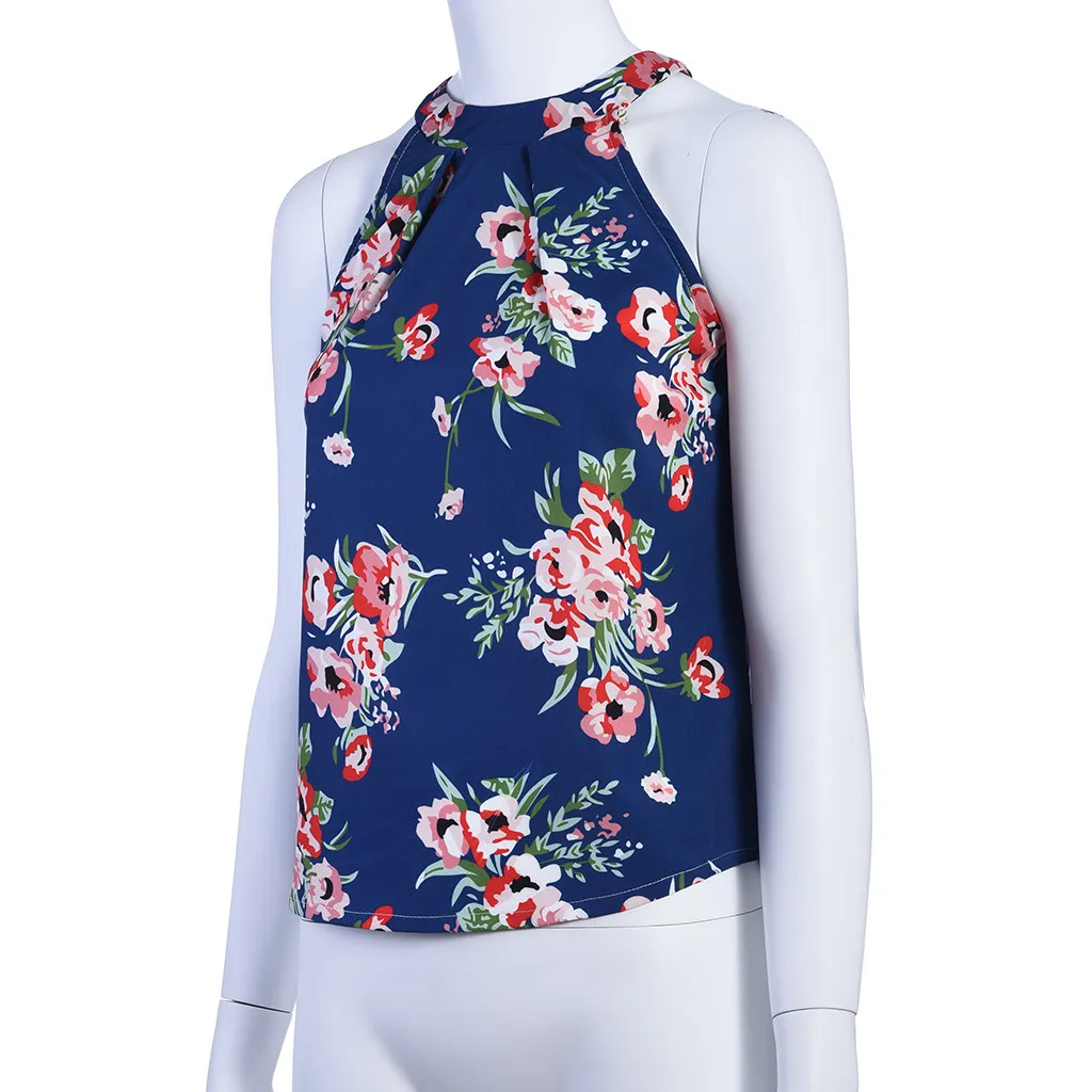Женская сексуальная блуза без рукавов с цветочным принтом